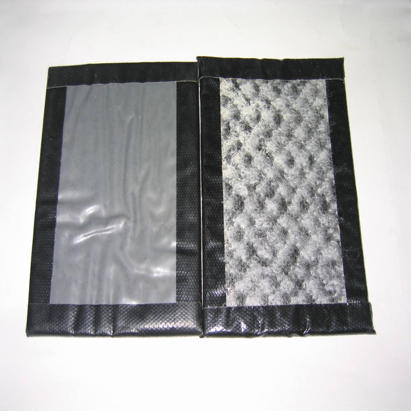 膨潤(rùn)土毯在安裝過程在損壞(撕裂、刺穿等),可以從一卷新的膨潤(rùn)土毯上切割一塊“補(bǔ)丁”蓋在破損的地方來進(jìn)行修補(bǔ)。補(bǔ)丁的四邊距離破損的地方長(zhǎng)度不能小于300mm,鋪放“補(bǔ)丁”前應(yīng)在破